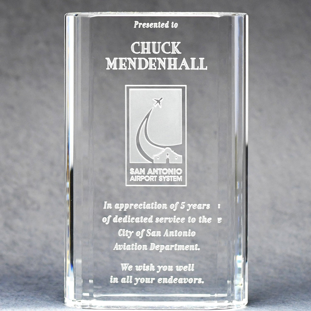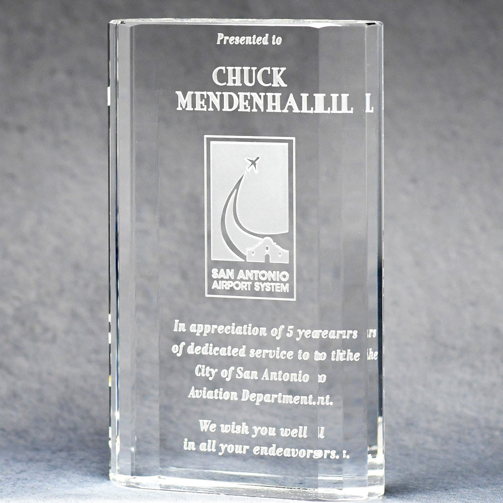 Greatness rarely happens by accident. This spectacular Optic Crystal Merit Award and its multi-faceted sides capture and reflect the light while beautifully displaying your etched logo and wording.
